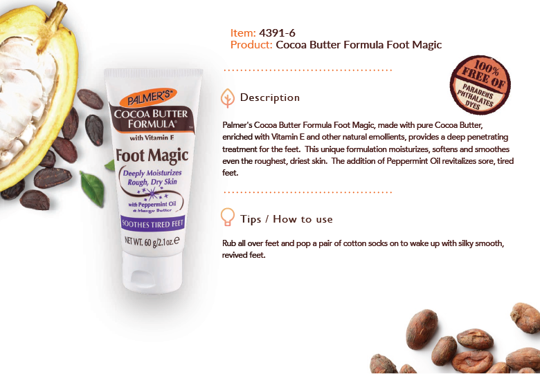 Palmer’s Cocoa Butter Formula Foot Magic, made with pure Cocoa Butter,